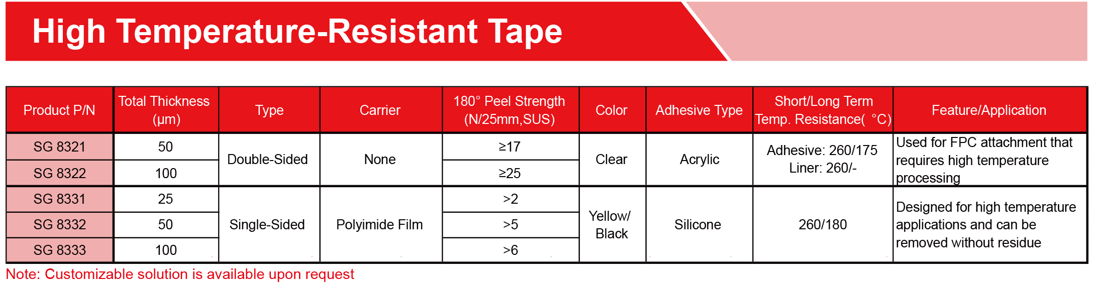 提供各種膠帶,由PET、無紡布、泡沫、涂有丙烯酸、硅樹脂、橡膠、熱熔、熱轉(zhuǎn)化粘合劑的PI基材制成。可提供各種寬度、長(zhǎng)度和釋放襯墊,以滿足特定需求,專為工業(yè)、商業(yè)和家庭應(yīng)用的特殊環(huán)境而設(shè)計(jì)。