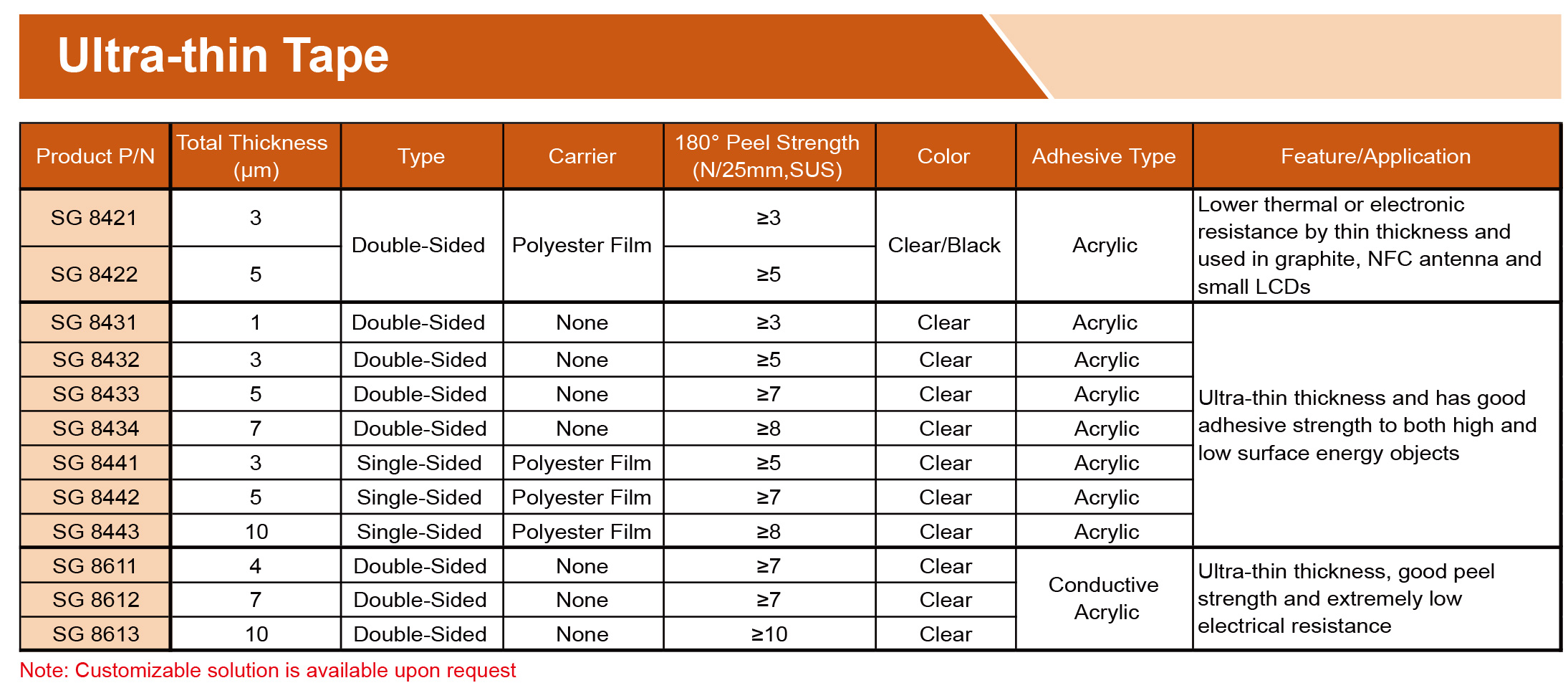 提供各種膠帶,由PET、無紡布、泡沫、涂有丙烯酸、硅樹脂、橡膠、熱熔、熱轉(zhuǎn)化粘合劑的PI基材制成??商峁└鞣N寬度、長度和釋放襯墊,以滿足特定需求,專為工業(yè)、商業(yè)和家庭應(yīng)用的特殊環(huán)境而設(shè)計(jì)。