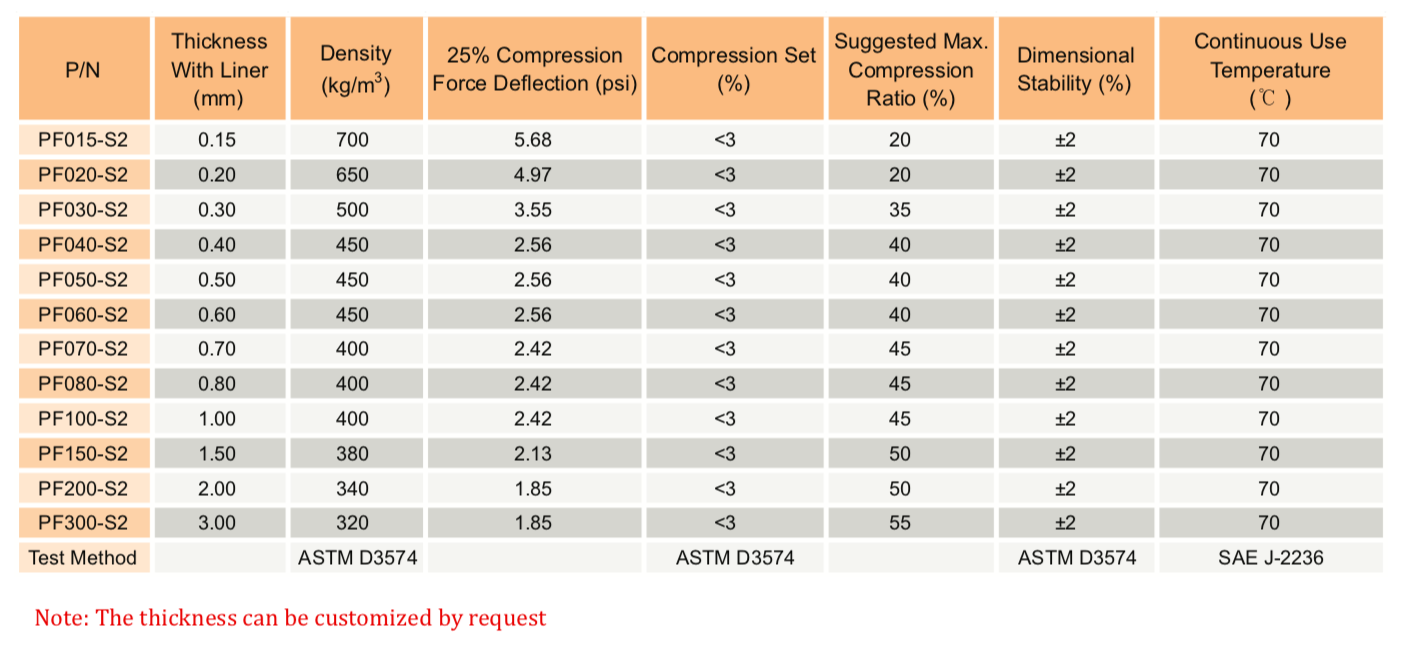 TM PF-S2 系列是一種柔軟、緩慢回彈的泡棉,用于電子設(shè)備應(yīng)用中的緩沖、保護性密封和長期間隙填充。S2系列泡棉具有極低的壓縮永久變形、高密封性能和優(yōu)異的沖擊吸收性能。" />